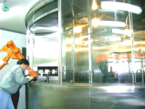 Close view of a paint-spraying chamber